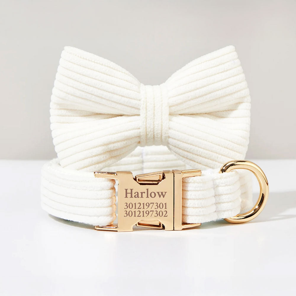 Offrez à votre compagnon à quatre pattes une touche de raffinement avec ce collier en velours côtelé ivoire. Conçu pour allier confort et résistance, il s'adapte parfaitement aux promenades urbaines comme aux escapades en nature. La gravure personnalisée ajoute une note unique, reflétant l'identité de votre chien tout en assurant sa sécurité. Chaque détail est pensé pour sublimer votre animal tout en répondant aux exigences du quotidien.